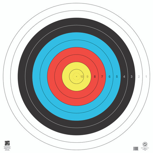 This target is weatherproof and has an official 80cm (32 inches) FITA style face painted on.