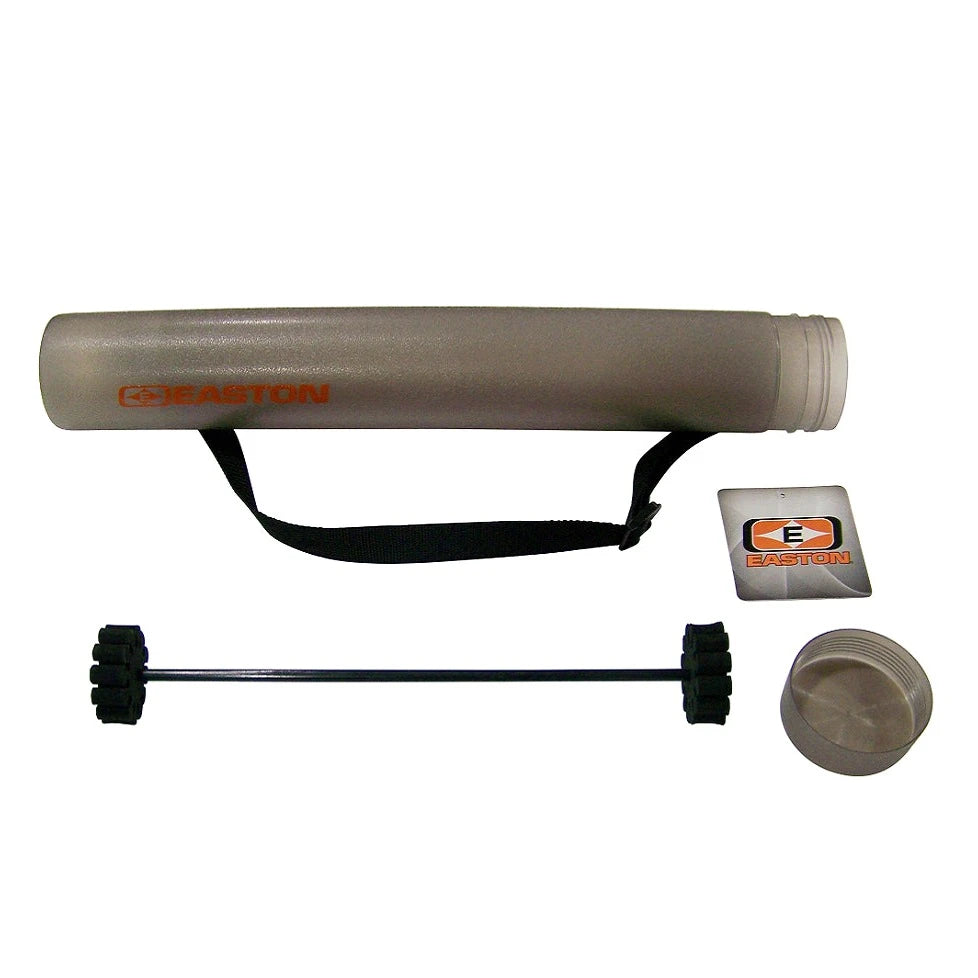 You trust Easton for the best arrows. Now trust them for the best way to carry your arrows! This handy arrow travel tote is perfect for carrying your arrows on trips or to the range. Features a locking adjustment of 22" to 35" length, threaded closure, approximately 3¼" diameter, and shoulder strap. The included arrow holder will hold up to a dozen arrows. Fits inside most hard and soft bow cases. New smoke color.
